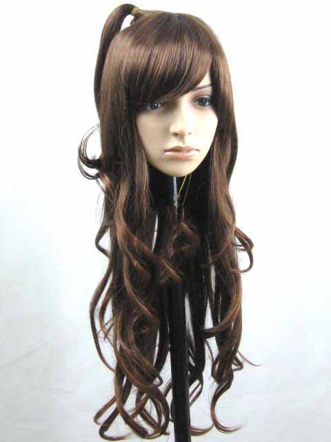 Women's Brown Neat Bang Fashion Long Curl Full Lace Synthetic Wigs |