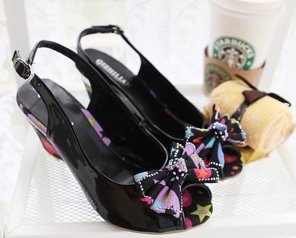 Women's Colourful Lovely with Rhinestone Bow Five-colours Wedge Sandals |