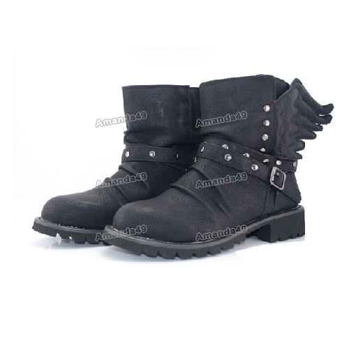 Women's Europe America Bind Belt Rivets Wings Ankle Boots |