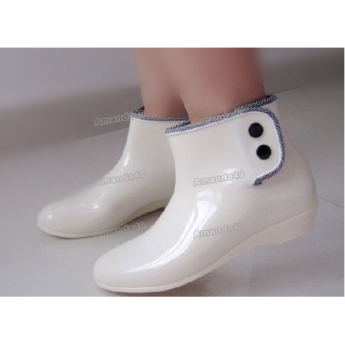 Women's Fashion Clasp Ankle Boots White Cute Rain Boots Galoshes |