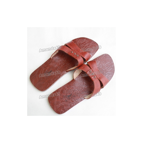 Women's Genuine Leather Brown Comfortable Home Slippers |