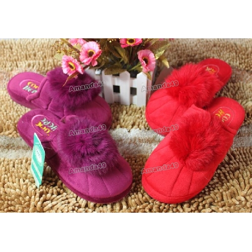 Women's Household Wedges Cotton Slippers Rabbit Fur Slippers |
