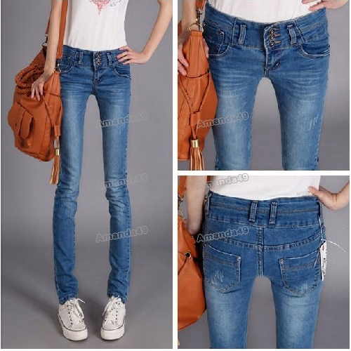 Women's Korea High-waist Light Blue Skinny Jeans |