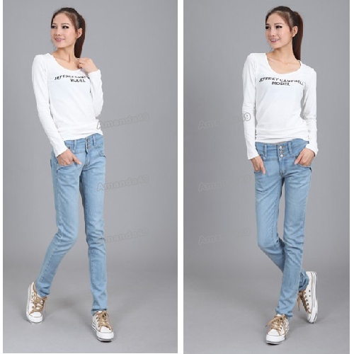 Women's Korea Light Blue Stretchy Skinny Jeans |