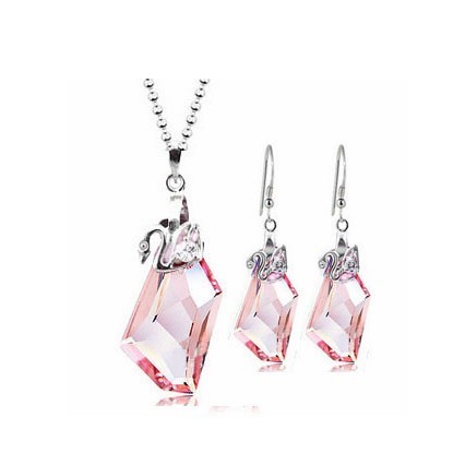 Women's Luxury Crystal Pink Diamond Silver Chain Bridal Jewelry Set |